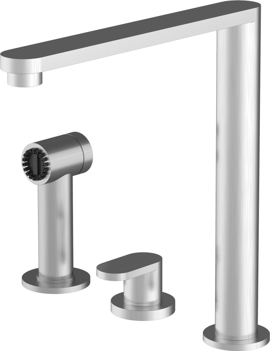 Descrizione: Rubinetto miscelatore B_Free Kit, con doccino estraibile, rotazione 360 gradi, inox satinato