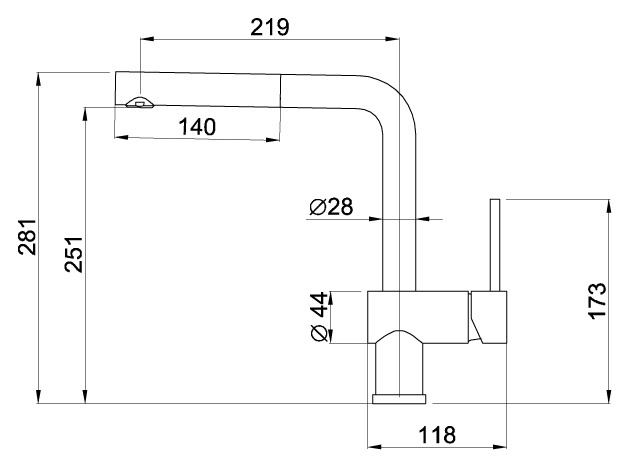 • Miscelatore monocomando con canna girevole e doccetta estraibile
