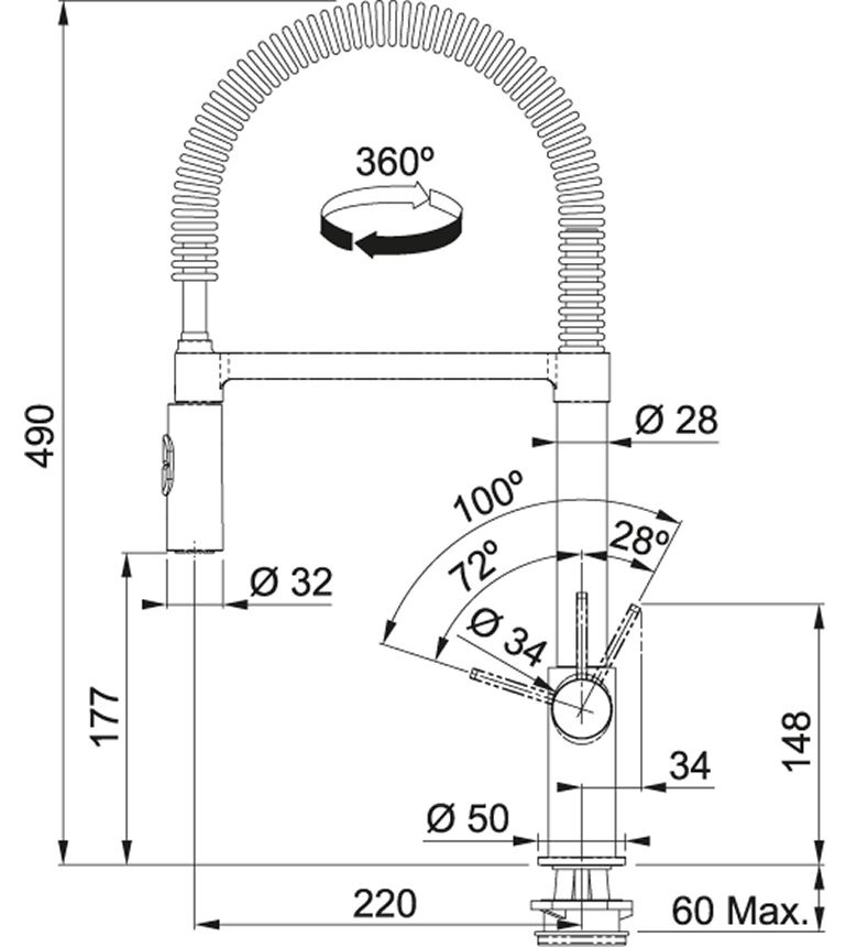Descrizione: Miscelatore monocomando, rotazione canna 360 gradi, doccetta doppio getto