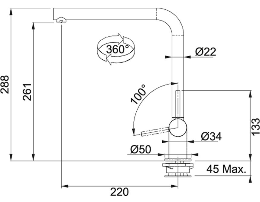 Descrizione: Miscelatore monocomando sottofinestra, rotazione canna 360 gradi