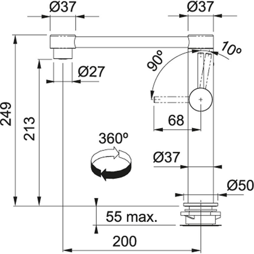 Descrizione: Miscelatore monocomando, rotazione canna 360 gradi