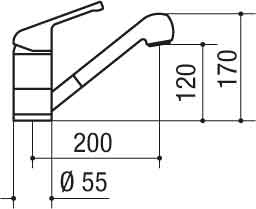 Descrizione: Miscelatore cromato con doccetta estraibile, rotazione a 120 gradi