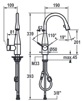 Descrizione: Miscelatore a leva, bocca orientabile fino a 270°, h 340 mm