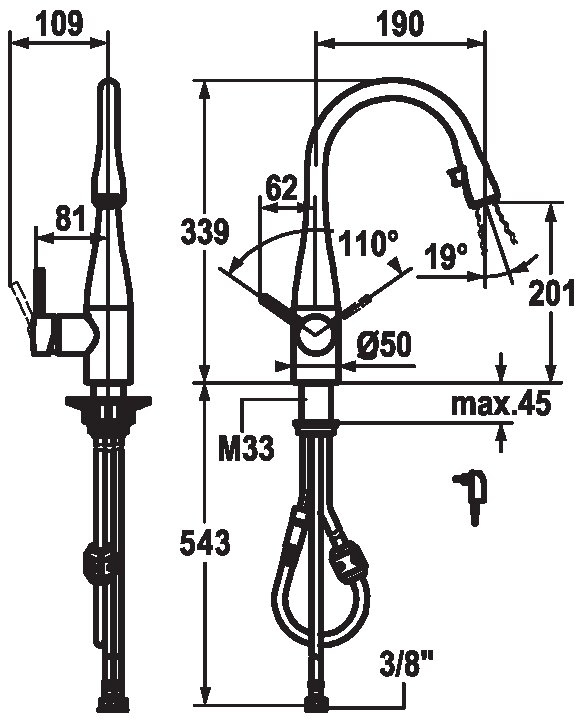 Descrizione: Miscelatore a leva, bocca orientabile fino a 270°, doccia estraibile, ILLUMINAZIONE A LED, h 340 mm