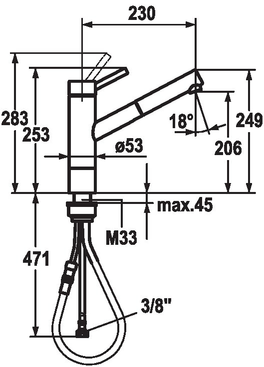 Descrizione: Miscelatore a leva, doccia estraibile, bocca orientabile fino a 130°, acciaio inox AISI