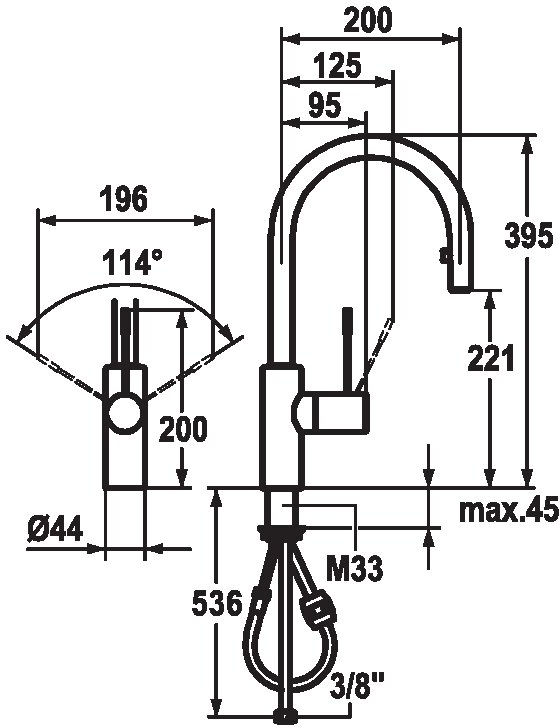 Descrizione: Miscelatore a leva, doccetta estraibile, bocca orientabile fino a 360°