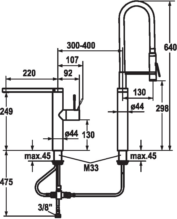 Descrizione: Miscelatore a leva, tubo flessibile, bocca orientabile fino a 360°