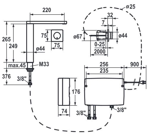 – Set di prolunga 1500 mm Z.536.352, composto da: tubo flessibile acciaio inossidabile 3/8"x3/8", doppio niplo, materiale di guarnizione