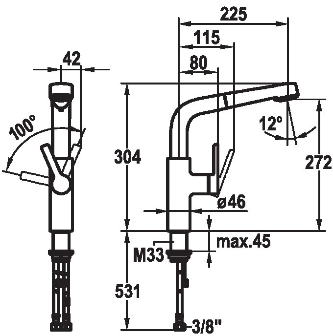 - Distanza tra la parete e il centro del foro del lavabo min. 42 mm