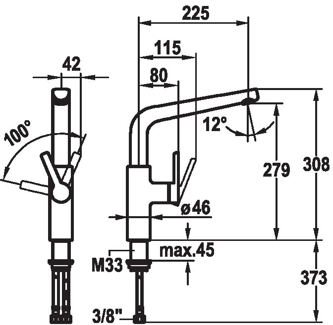 - Distanza tra la parete e il centro del foro del lavabo min. 42 mm