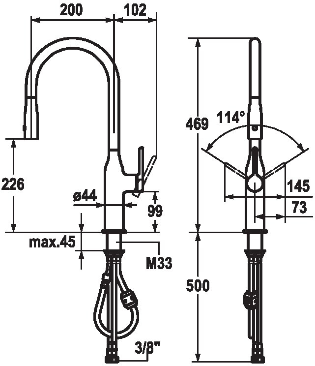 Descrizione: Miscelatore a leva, doccia estraibile, bocca orientabile fino a 360°