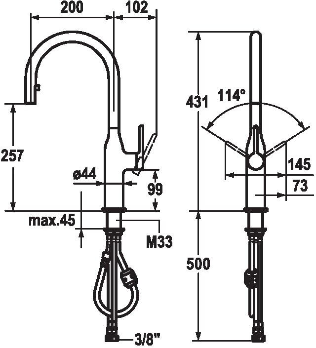 Descrizione: Miscelatore a leva, doccia estraibile, bocca orientabile fino a 360°