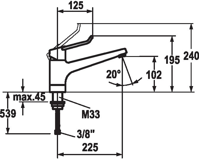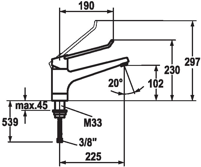 Descrizione: Miscelatore a leva, bocca orientabile 160 gradi, leva comando ergonomica