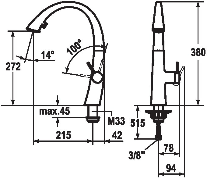 Descrizione: Miscelatore a leva, doccetta estraibile, bocca orientabile fino a 270°
