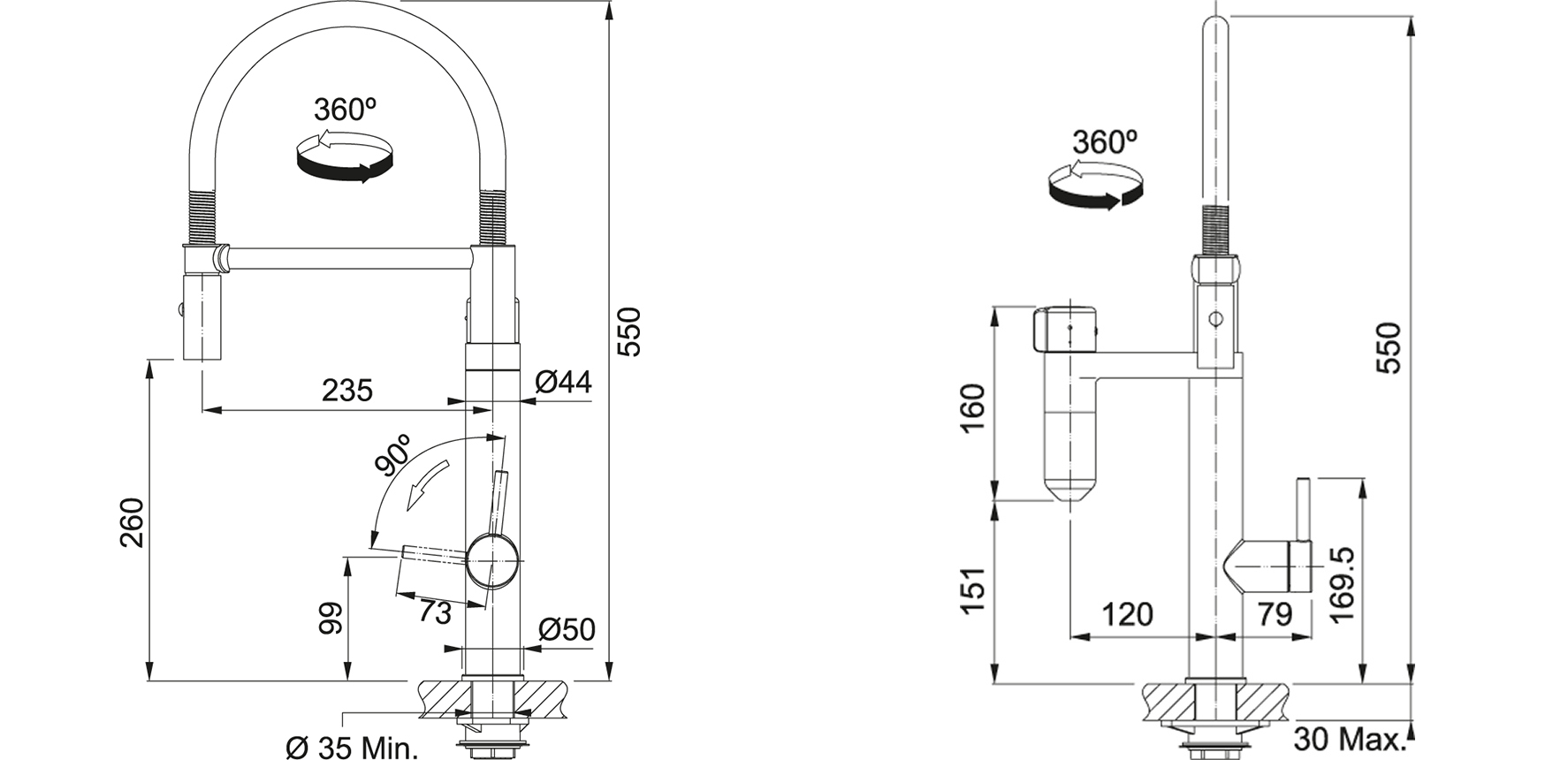 Descrizione: Miscelatore con filtrazione acqua Vital Capsule 2in1 Semi Pro, rotazione canna 360 gradi, doccetta orient. doppiogetto