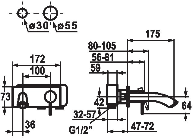 Descrizione: Miscelatore a leva con attacco a muro con bocca fissa