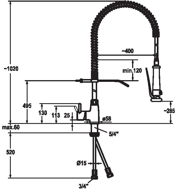 - Fissaggio tramite raccordo filettato 1 ¼"