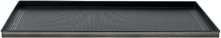 Descrizione: Teglia rettangolare microforata (foro diam. 2 mm) in lega di alluminio, rivestimento antiaderente cm 60 x 40, alt. 2 cm